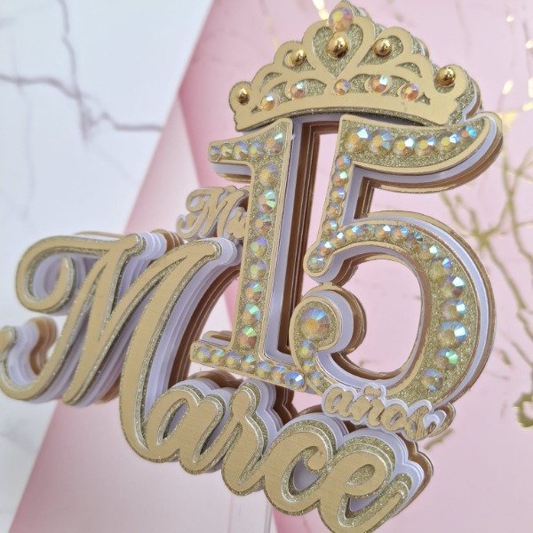 Cake topper 15 años personalizado con nombre y edad.